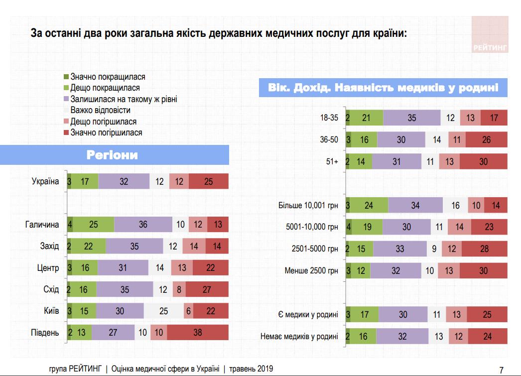 В то же время 37% респондентов увидели ухудшение, 32% считают, что в уровне качества государственных медицинских услуг ничего не изменилось, 12% затруднились ответить.
