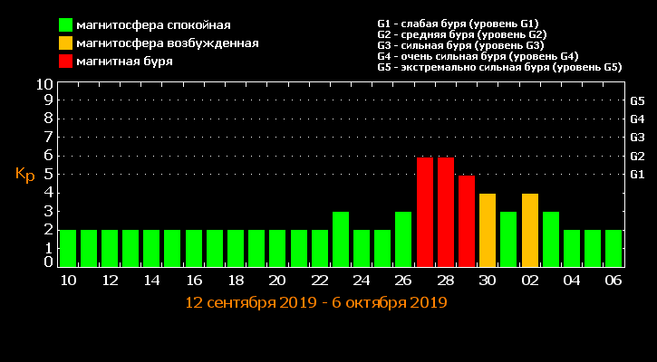 Украину в конце сентября 2019 года накроет ряд магнитных бурь уровня G1 и G2.