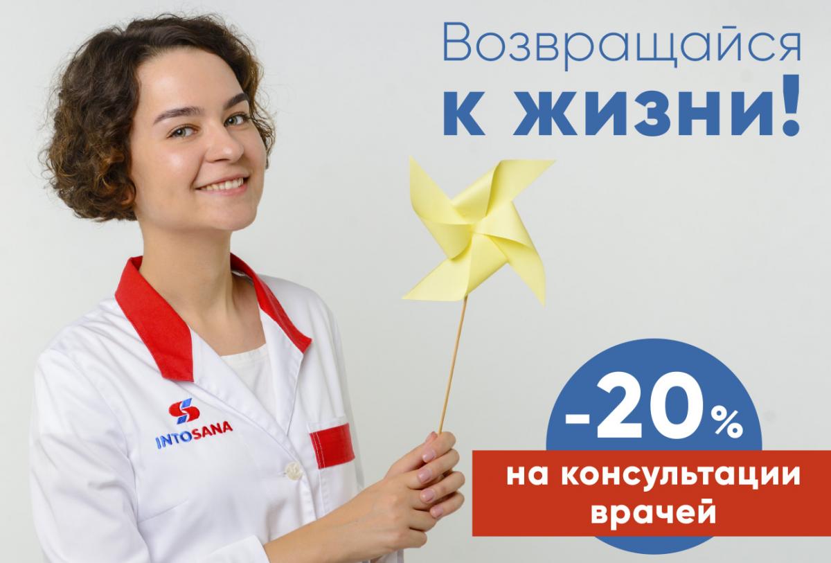 Для того, чтобы облегчить для жителей Одессы и Киева возврат к прежней жизни и позволить заботиться о своем здоровье, Into-Sana запускает инициативу «Возвращайся к жизни» и снижает стоимость консультаций своих специалистов на 20% с 12 по 25 мая. Кроме того, компания предлагает скидку 20% на программы страхования «Ургентный стационар», «Скорая медицинская помощь» и «Неотложная диагностика».