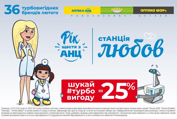 Самые дорогие люди достойны вашей заботы, а забота про здоровье – главное. Февраль – месяц любви, потому в рамках проекта «Год счастья с АНЦ, стАНЦия ЛЮБОВЬ» в аптеках под брендами «Аптека АНЦ», «Аптека Копейка», «Аптека Шар@» и «Благодать» действует #турбовыгода – до 25% на самые необходимые препараты. Самые крупные фармацевтические бренды дарят скидки – успейте воспользоваться!