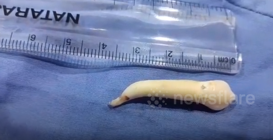 После удаления оказалось, что длина проблемного зуба почти в два раза превышала норму: средняя длина человеческих зубов — около 20 миллиметров.