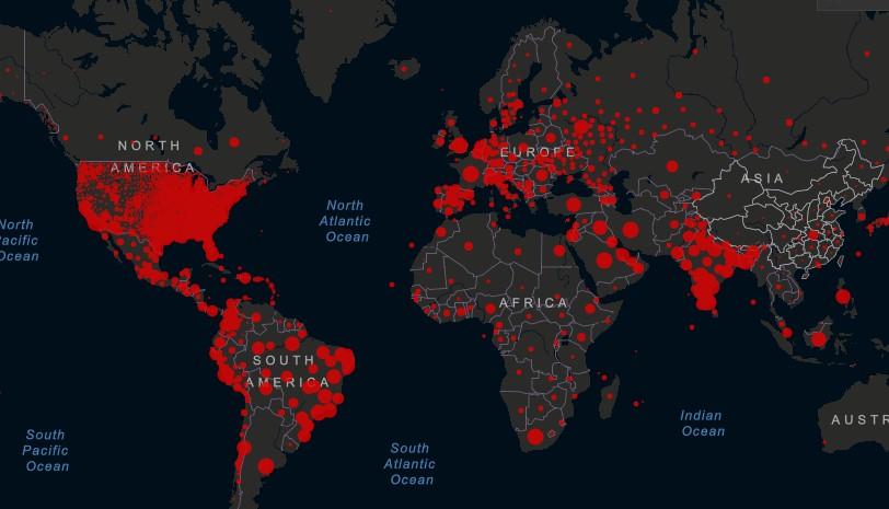 Об этом свидетельствуют данные карты распространения вируса при Университете имени Джона Хопкинса.
