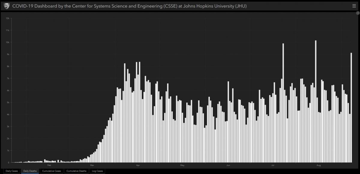 По данным организации, в понедельник, 7 сентября, в мире умерли 9 тысяч 104 человека. При том что сутками ранее, в воскресенье, 6 сентября, умерли 4 тысячи 32 человека.
