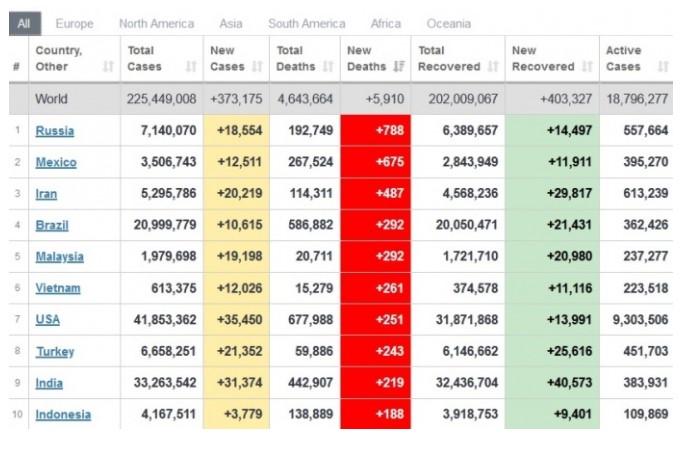 На сегодня по данным сайта Worldometers Россия лидирует в мире по суточной смертности от коронавируса.